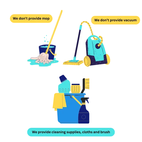 For regular domestic cleaning, we kindly ask that a vacuum cleaner and mop + bucket are available at the property. This helps us work efficiently and is especially helpful for allergy-sensitive households.